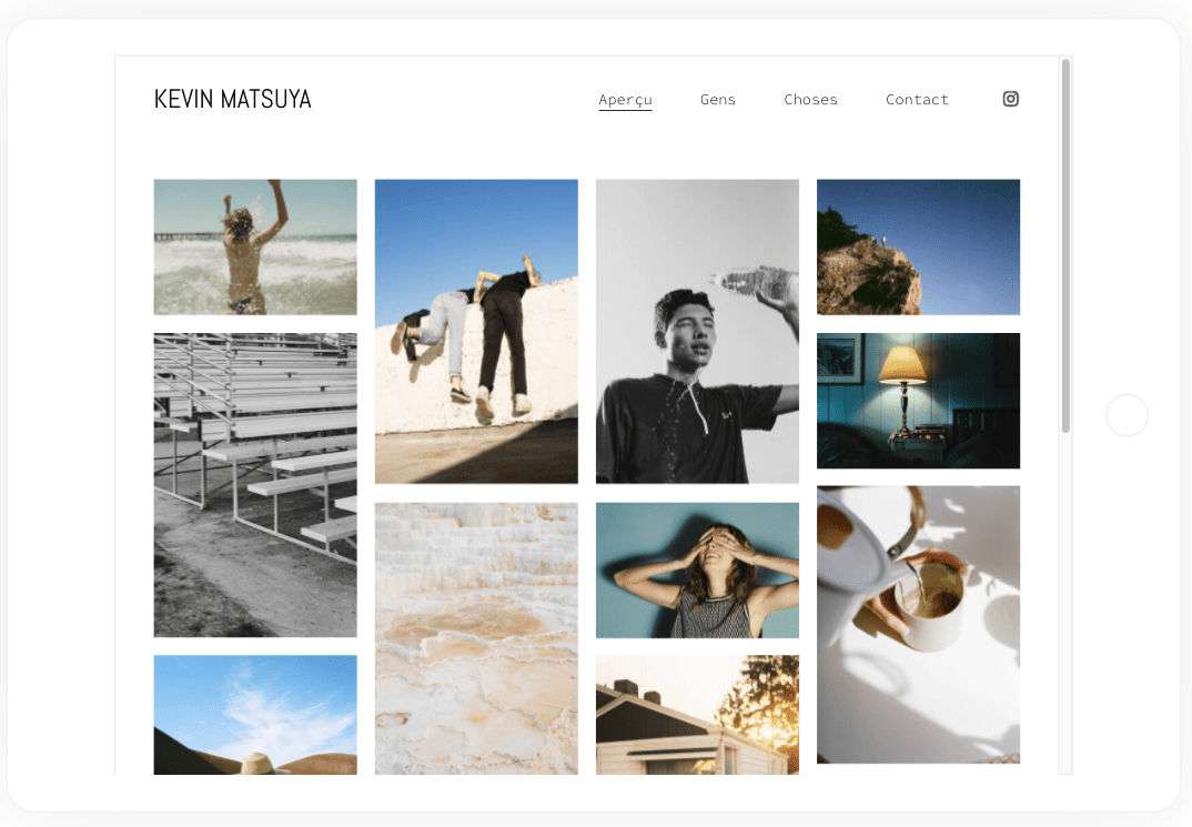 Squarespace propose des modèles qui n’attendent qu’à être utilisés par des artistes et des graphistes. Il mise sur l’élégance et me fait penser à un magazine de mode avant-gardiste. Il propose également une fonctionnalité de boutique en ligne. Cependant, l’interface gagnerait à être simplifiée : je ne la trouve pas particulièrement intuitive.